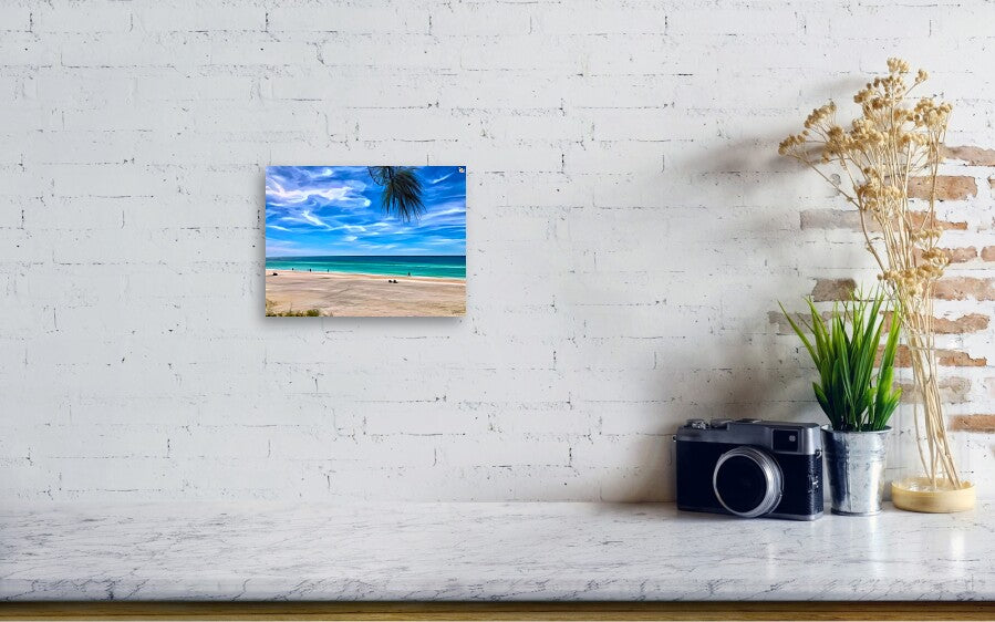 Impressionistic Beach Scene wood print by Lynn Tran. Bring your artwork to life with the texture and added depth of a wood print. Your image gets printed directly onto a sheet of 3/4" thick maple wood. There are D-clips on the back of the print for mounting it to your wall using mounting hooks and nails (included).