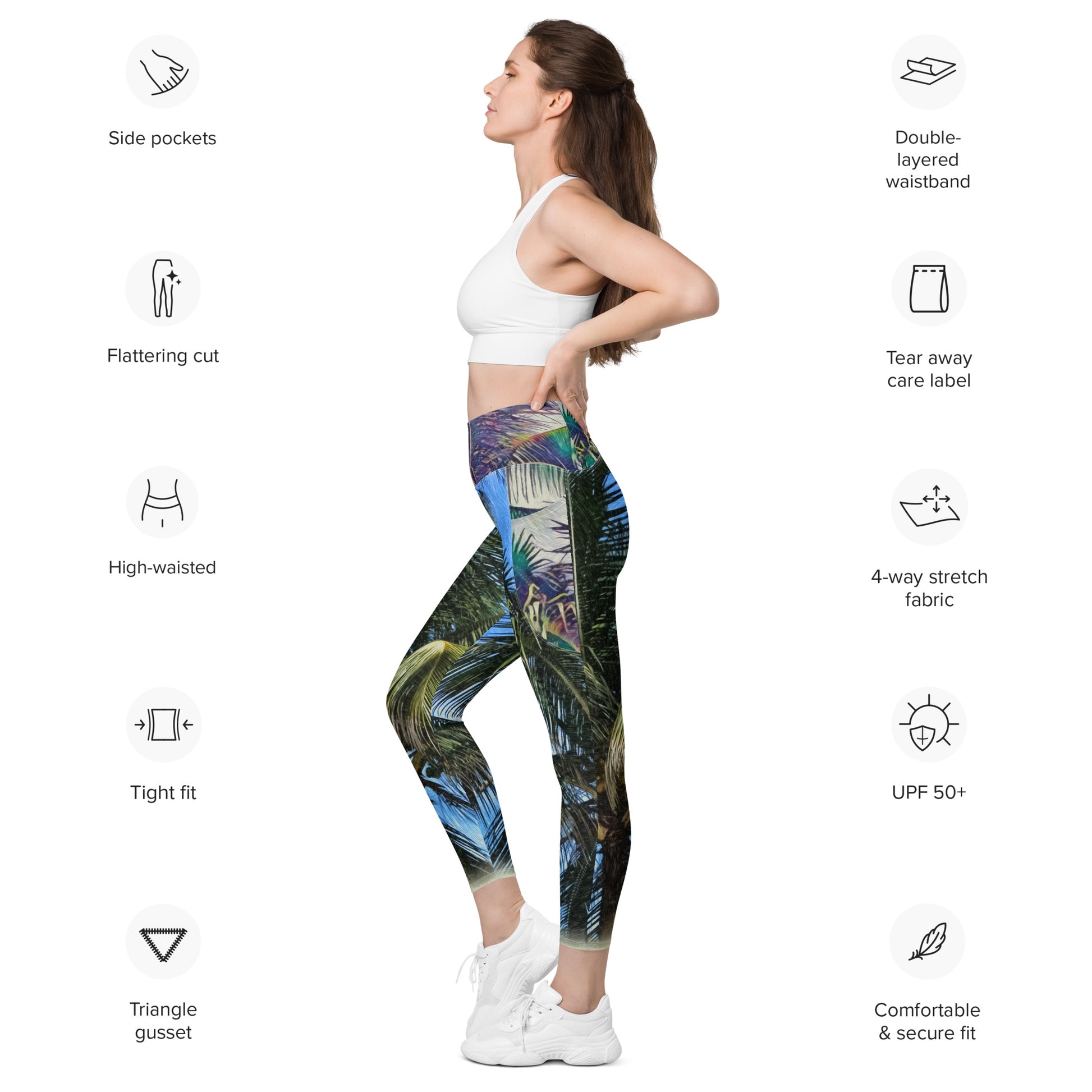 Meet your new favorite pair of pocket leggings. Featuring a classic, high-waisted cut, exceptional comfort, and two practical side pockets, these semi-compression leggings will support you during workouts and casual strolls around the city. Get yours now!