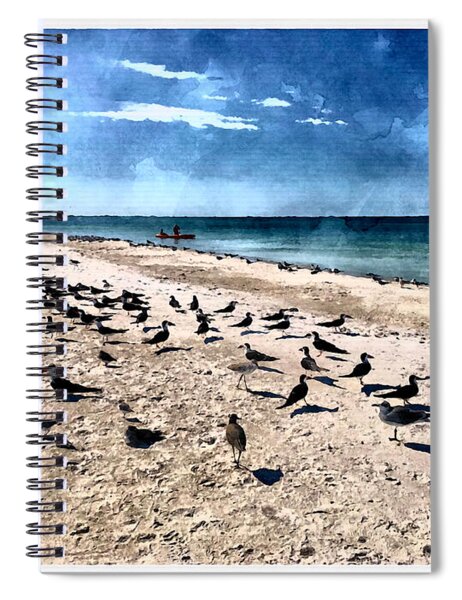 Our spiral notebooks are 6" x 8" in size and include 120 pages which are lined on both sides. The artwork is printed on the front cover which is made of thick paper stock, and the back cover is medium gray in color. The inside of the back cover includes a pocket for storing extra paper and pens.