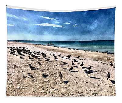 Step into the serene rhythm of "Seashore Symphony." This art piece captures a moment of coastal magic as a flock of seabirds, silhouetted against the shimmering sea, dance upon the beach. The vivid blues and tranquil hues invite you to lose yourself in the simplicity and beauty of beachside bliss. Perfect for bringing nature to your space, this artwork is not just a visual treat; it's a portal to the peaceful cadence of island life. Own "Seashore Symphony" and let your soul soar with the gulls, adrift in the endless azure skies. Wouldn't this be just the perfect escape to mount on your wall?