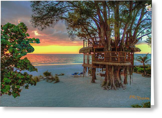 Sunset at Beach Treehouse - Greeting Card