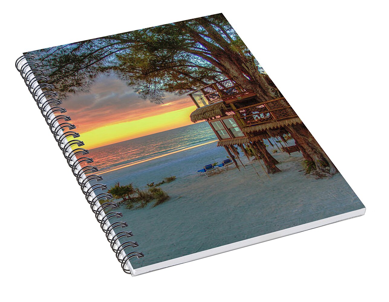 Our spiral notebooks are 6" x 8" in size and include 120 pages which are lined on both sides. The artwork is printed on the front cover which is made of thick paper stock, and the back cover is medium gray in color. The inside of the back cover includes a pocket for storing extra paper and pens.