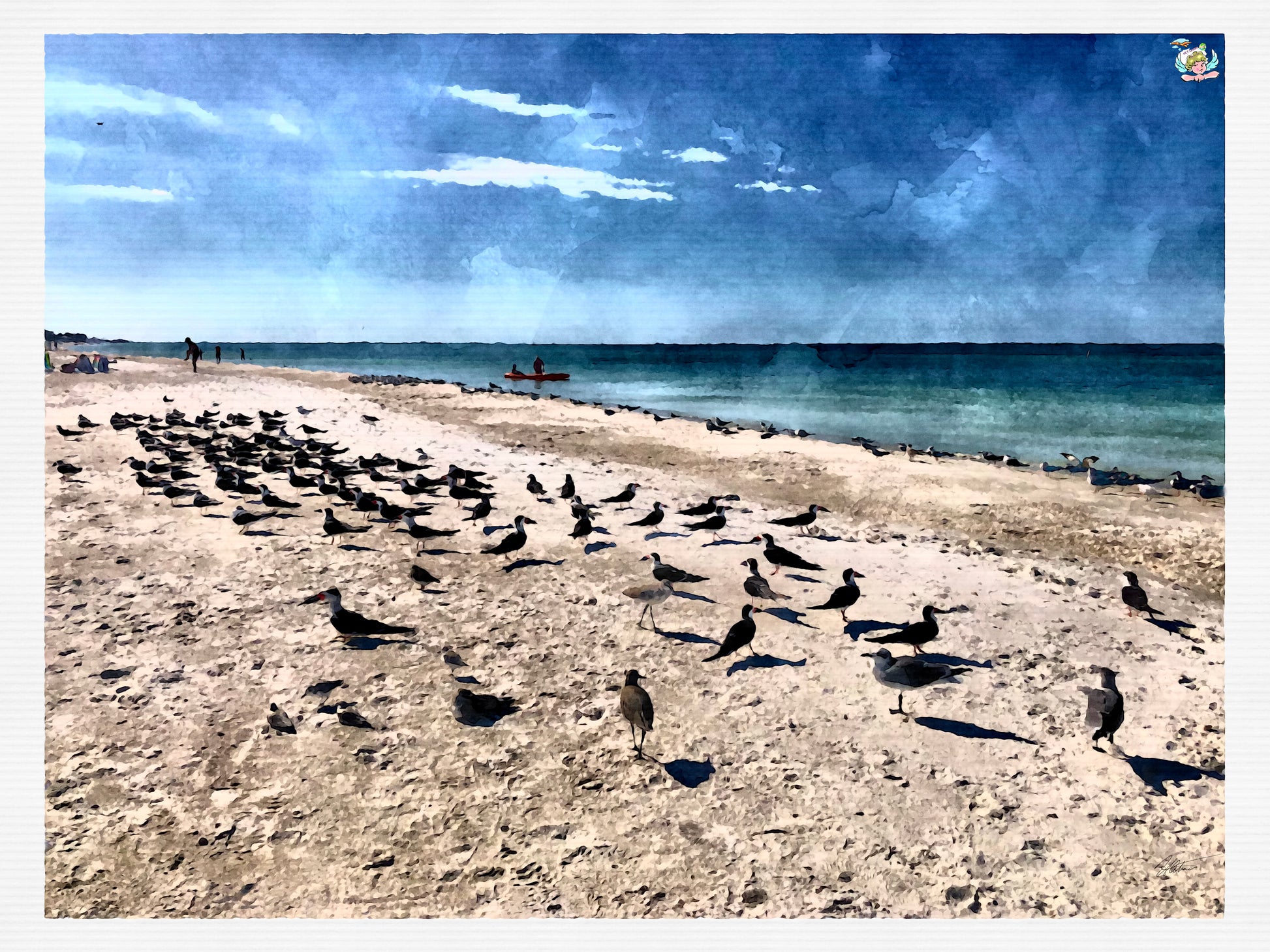 Step into the serene rhythm of "Seashore Symphony." This digital art piece captures a moment of coastal magic as a flock of seabirds, silhouetted against the shimmering sea, dance upon the beach. The vivid blues and tranquil hues invite you to lose yourself in the simplicity and beauty of beachside bliss. Perfect for bringing nature to your space, this artwork is not just a visual treat; it's a portal to the peaceful cadence of island life. Own "Seashore Symphony" and let your soul soar with the gulls, adrift in the endless azure skies. Wouldn't this be just the perfect escape to mount on your wall?